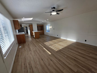 1998 SRI 16’ x 76’ Bedrooms, 2 Bathrooms, 5 Appliances, Deck, Shed, Central AC. Welcome to this extensively renovated mobile home offering modern comfort, quality upgrades, and exceptional value. The exterior has been completely refreshed with a new roof, updated front façade, Smart Board trim, new lower skirting, and fresh paint including the home, deck, and railings. All windows have been resealed and fitted with new screens, while durable Trex decking on the front steps and patio provides long-lasting outdoor living. Two freshly painted, dry, and lockable sheds add extra storage and functionality. Inside, the home has been fully updated from top to bottom, starting with a brand-new subfloor and stylish luxury vinyl plank flooring throughout. The bright kitchen is a standout feature, showcasing quartz countertops, a movable island with extended seating, deep double sink, new backsplash, and a full set of appliances. Modern lighting has been added throughout, including pot lights with dimmers and upgraded LED fixtures. Major mechanical upgrades include a high-efficiency furnace, central air conditioning, new hot water tank, updated PEX water lines, and a smart thermostat for added comfort and efficiency. The home also features all new doors, trim, hardware, electrical switches, and GFCI outlets for peace of mind. Both bathrooms have been fully renovated with new fixtures, including a soaker tub and double vanity in one, and a sleek, modern finish in the other. The spacious primary bedroom offers a large walk-in closet, creating a comfortable private retreat. Additional highlights include fresh paint throughout, new blinds, improved insulation, heat tape on water/sewer lines, and a raised, sealed skylight for added natural light. With thoughtful upgrades inside and out, this move-in-ready home offers stylish living with all the major improvements already completed. Asking price is $264,900.