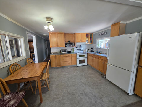 1976 14’ x 68’ 2 Bedrooms, 1 Bathrooms, 4 Appliances, Deck, Shed, Addition. This well-maintained and thoughtfully updated mobile home is packed with value and ready for its next owner! The property features a freshly resealed roof and a large, covered carport that easily fits two vehicles, plus a freshly re-sealed driveway rated to last another 7 years. Inside, you'll love the bright and refreshed kitchen, featuring new cabinets, countertops, sink, and faucet—perfect for everyday cooking and entertaining. The flooring has been updated, and the newer windows bring in great natural light. The bathroom has been fully renovated with a new tub, tile tub surround, new toilet, and a sleek vanity. A 3-year-old hot water tank, newer furnace, and new heat tape ensure year-round comfort and efficiency. Additional highlights include a re-sealed roof, framed and insulated skirting (R12) for better energy performance, and a covered back deck—ideal for enjoying the outdoors in any weather. The large addition, currently used as a workshop, offers extra space for projects, storage, or whatever you need. This home offers incredible value with all the key upgrades already done. Book your showing today and see all it has to offer! Asking $149,900.