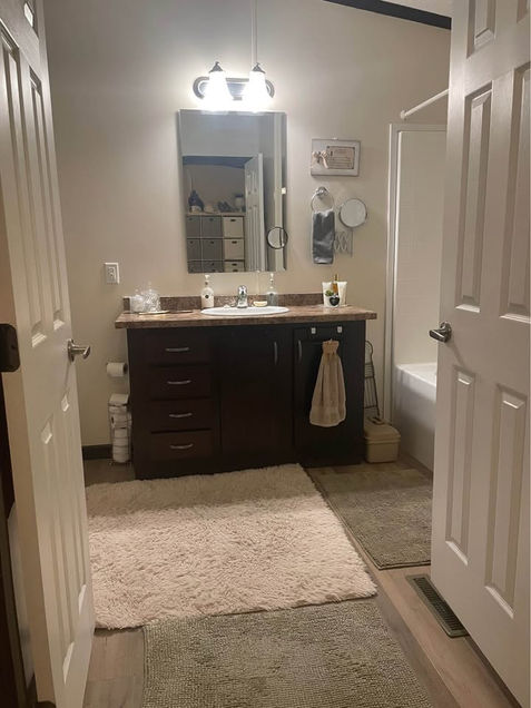 2013 Friendship Homes 16’ x 76’, 3 Bedrooms, 2 Bathrooms, 5 Appliances, Deck, Shed. Spacious and bright open-concept mobile home featuring cathedral ceilings that run end to end, filling the home with natural light throughout. The large primary bedroom spans the rear of the home and includes a private ensuite with a wide soaker tub. A combined laundry and functional storage room houses a brand-new furnace installed in 2025, adding convenience and peace of mind. The kitchen is the true hub of the home, offering an abundance of storage with full-height pantry cabinetry and a breakfast island that provides additional workspace, making it ideal for family gatherings, casual meals, or a quick homework station. Newer LVP flooring adds a modern, durable touch throughout the living areas. At the front of the home, two bright bedrooms share a lovely bathroom and a second entrance/exit, perfect for families or guests. Recent updates include a hot water tank replaced in 2020, new toilets, and a new front door, while all windows feature UV protection for added comfort year-round. Outside, the property offers a paved driveway, a 10x12 utility shed for extra storage, and a charming rear entrance that opens onto a generous 10x14 sun deck, perfect for relaxing or entertaining. Located on a quiet cul-de-sac with post box delivery in an established and safe community, this home is within walking distance to the East Hills and Huxley area of NE Calgary. This fabulous find is a must see, with a motivated seller and showings now underway. Don’t miss out on one of the newest and best-looking homes in the park! Asking price is $209,900.