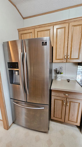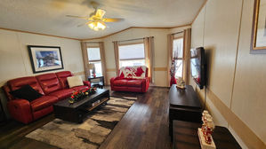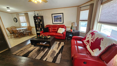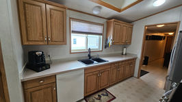 2000 Moduline 16' x 76' 3 Bedrooms, 2 Bathrooms, 5 Appliances, Deck, Shed, Addition. This very clean, GORGEOUS home features a front living room with new engineered wood flooring and lots of windows for natural light. The bright kitchen features a new sink + faucet, instant hot water tap, newer skylight, a pantry and plenty of cabinet/cupboard space. Outside, the home comes with a new roof, new skirting, a new fence and is located on a large lot and features a large deck and 2 sheds! Don’t miss out! Call to book your private showing today! Asking price is $179,900.